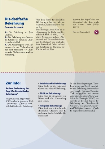 tät) drei Stufen der Bekehrung: • Religiöse Bekehrung: Umkehr", "Moralische Umkehr"