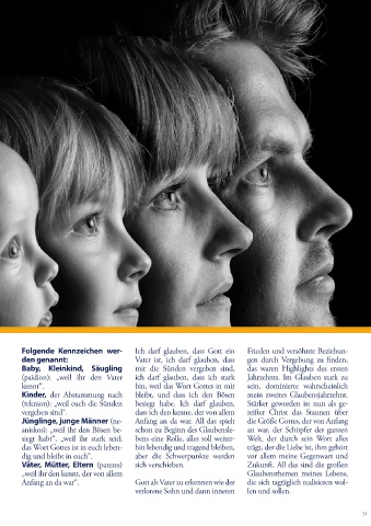 Folgende Kennzeichen wer- Ich darf glauben, dass Gott ein Frieden und versöhnte Beziehun-