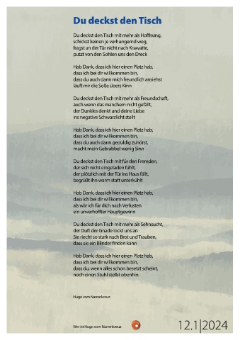 Du deckst den Tisch mit mehr als Sehnsucht,